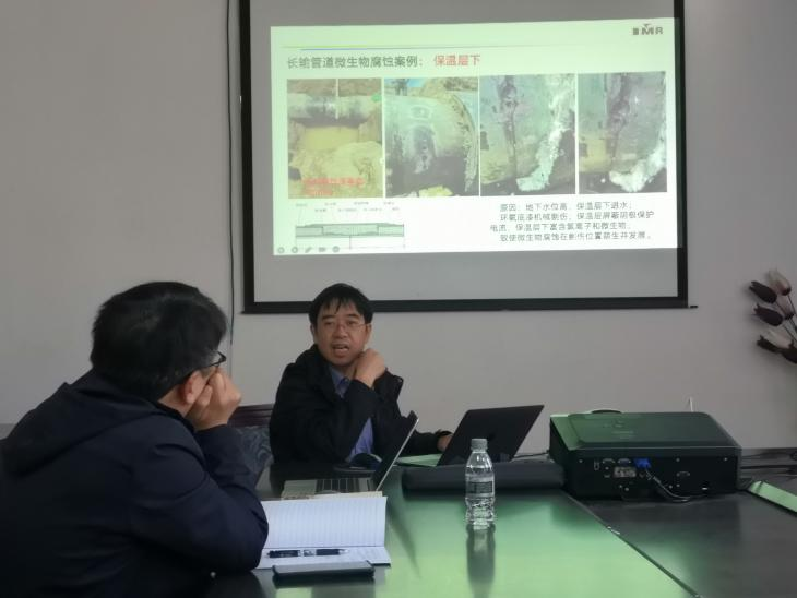 闫茂成研究员结合多年对油气管道微生物腐蚀及在线监测技术的研究,从背景出发介绍了微生物腐蚀对油田生产的影响与危害。通过展示集油管段、注入管段、渗水管的微生物腐蚀图片,细致的讲解了集输管道的微生物腐蚀。通过剥离涂层下管道微生物腐蚀、聚合物驱环境微生物腐蚀、微生物致应力腐蚀等案例,总结分析了微生物影响下管道的腐蚀规律,并介绍了在线微生物监测技术以及常用的微生物腐蚀防护措施。