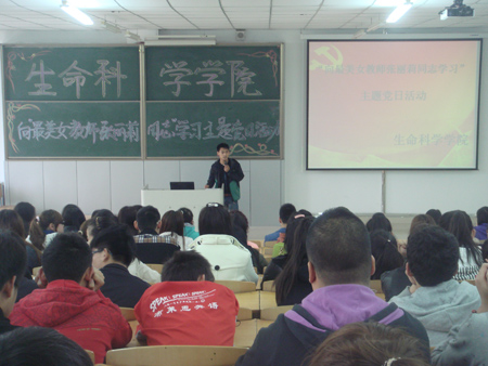 整场活动以观看张丽莉学姐的视频事迹为主。视频展现了教育的最大本质是爱的教育。展示了张丽莉以爱诠释教师这个伟大的职业。她用大爱与大勇,给我们这些学弟学妹们树立了一座灯塔。她也以实际行动证明了作为一个中共党员应该具有的高尚品格。我们每个人都应该学习张丽莉的勇于担当和无私奉献精神。