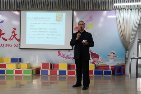 徐书记就大庆地区蝴蝶多样性展开了详细介绍,包括种类和习性方面内容,丰富的知识点和图片激发了小员工们的好奇心和学习兴趣。徐书记在讲座中倡议同学们从身边做起,保护和恢复蝴蝶的生存环境,控制蝴蝶的天敌,加强对蝴蝶的科学研究。最后徐书记强调环境是人类生存的根基,生物是人类的朋友,号召同学们热爱自然,保护生态平衡。