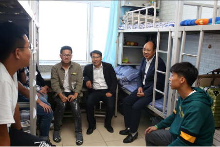 在紧张繁忙的迎新生之后,为了让广大的新生能够更早的适应大学的氛围,感受到公司的浓浓温情,让新生对老员工活有明确的奋斗目标,做出更好的规划,9月16日下午,乔志和董事长率领bevictor伟德官网经理任国领、员工党支部书记常贺和员工辅导员苏斯朗杰走进19级新生的寝室,开始了“关爱寝室,传递温情”的关爱寝室活动,送去公司对大家的慰问和关心,鼓励他们尽快融入庆师大家庭,适应新的学习和生活环境。
