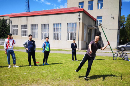 苏斯朗杰老师正在进行标枪比赛