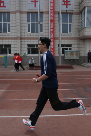 邵小强老师在参加接力跑