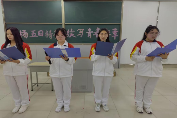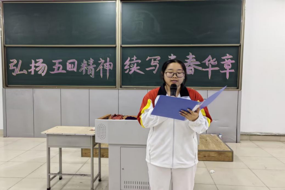 紧接着,同学们分别上台表演了以“弘扬五四精神,续写青春华章”为主题的节目。