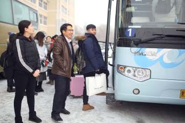 皑皑白雪阻挡不了同学们前进的脚步。大会结束后,在公司老师们的陪同下,同学们在主楼前集合,同其他公司的同学们一起,整装出发。公司副经理刘恒、张国军也来到现场指导送考工作。带着师长们的殷殷期盼,同学们带着自信的笑容在徐长君书记、常贺书记的陪伴下奔赴考场。