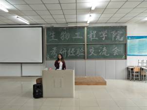 考取沈阳药科大学的胡天帅学长以自己的切身经历,向同学们讲述了大家在考研的过程中一定要注意心态问题;刘露学姐向同学们分享了面试中的相关技巧,使同学们对这一环节的注意事项有了进一步的了解。闫蓉学姐就如何考研、如何备考英语等问题做了详细讲解。她分别从专业、英语、政治三方面出发进行分析。在专业复习上,要依据考试大纲;在英语方面,重在练习,多动脑,勤动手;在政治方面,大纲也很重要,同时注意答题时的条理。周志丹学姐讲述了她调剂的磨难苦痛。她认为,考研的成功等于正确的方法加不懈的努力以及恰当的复习材料。调剂贵在坚持,不再相信努力,冲刺并赢在最后的一米。她风趣的语言、清晰地条理、赢得了同学们阵阵热烈的掌声。