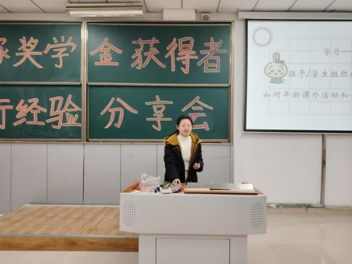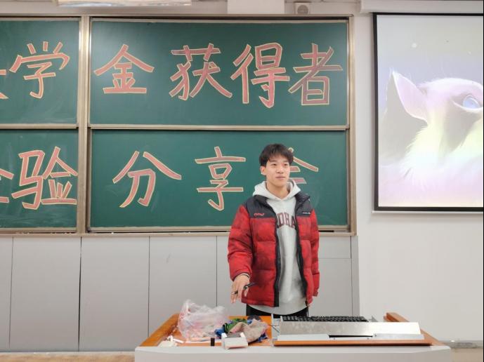 张淑萍同学声情并茂地讲述了自己如何参与各种比赛、考试的丰富经历。每一次准备过程中,挑灯夜战整理资料、反复练习答题技巧或是打磨参赛作品都是常态,但她从未想过放弃。正是这种不怕失败的精神,让她得以在一次次挫折中积累宝贵的经验,不断总结反思,逐渐提升自己的实力与心理素质。她用自身经历鼓励同学们,要大胆地勇敢尝试,积极参与到各种比赛与实践活动中去,在挫折中积累经验,在挑战中成长进步。