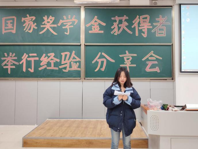 分享会伊始,主持人具体阐述了国家奖学金的涵义及评奖要求并向同学们隆重介绍了几位奖学金获得者。各位奖学金获得者依次上台发言。高蓉同学率先发言,她成绩优异、名列专业前茅,结合自身深入剖析了自己在专业学习中的探索过程,分享了如何从基础课程入手,逐步构建完整的知识体系的心得体会。她强调合理规划时间,制定科学的学习计划,才能在繁重的学业中做到有条不紊。