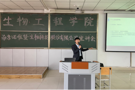 bevictor伟德官网于2021年3月31日15时45分在主楼1-2举行“南京诺唯赞生物科技股份有限公司宣讲会”活动。本次活动的主讲人为诺唯赞人力资源部人事专员谭龙雨,员工党支部书记常贺出席本次活动,参与人员为17级部分员工及18级全体员工。