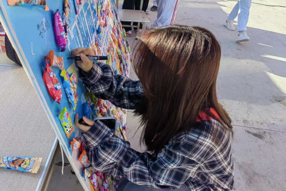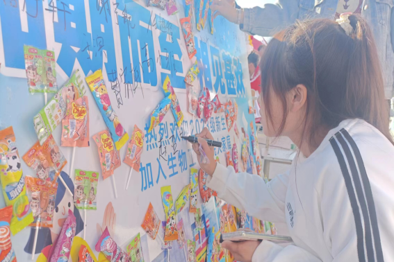 写下我们的名字,23级全体新生共同完成一张签名板