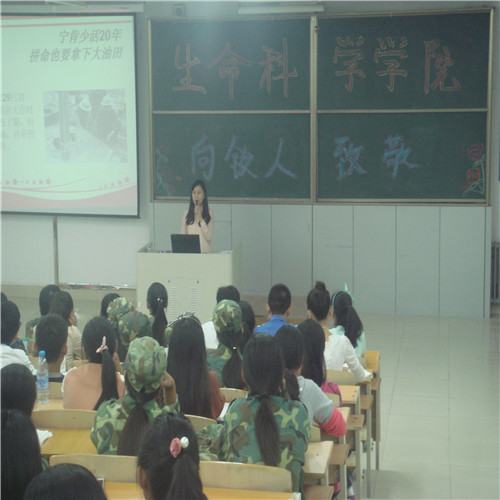 大庆精神、铁人精神是中华人民需要传承的美好品质,更是一名大庆学子应该具有的品德。刘佳琳同学讲述了铁人的生平事迹和经典语录,那些激励人奋进的话语在今天听来仍然让人心潮澎湃。通过报告,同学们真正了解了铁人,走近了铁人,以铁人精神为自己奋斗的精神源泉,以铁人力量为自己学习的前进动力。刘佳琳强调,工作标准向铁人看齐,言行规范向铁人看齐,学习精神向铁人看齐。困难面前当先锋,考验面前树旗帜,利益面前做典范。同学们更要发扬吃苦耐劳的精神,诚信友爱,与时俱进,刻苦创新,追求卓越,勇于探索。她还鼓励同学们一定要具有和谐的团队精神。