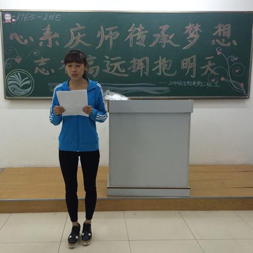 接着,有同学朗读了校庆征文中的几篇获奖文章,伴随着她铿锵有力的声音,同学们的爱校之情也油然而生。在bevictor伟德官网的众多员工中,有一位被称为“最美女教师”的人,她就是张丽莉,她传承了大庆精神、铁人精神,为了员工无私奉献。最后,同学们一起合唱了一首“丽莉你最美丽”,通过这首歌,向张丽莉学姐致敬,并祝贺我们美丽的庆师50岁生日快乐!