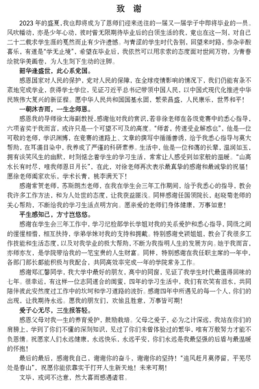 祝你们扬起青春的风帆,用理性导航,用自信掌舵,在更广阔的海洋乘风破浪,吹响水手的号角,无所畏惧,勇往直前。