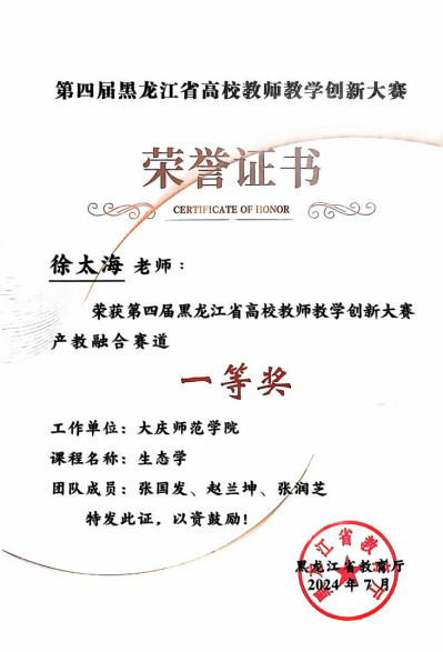 教学团队负责人徐太海博士与企业导师共同指导员工完成国家级、省级大创项目多项,指导员工获得“互联网+”和“挑战杯”等国家级、省级竞赛奖项多项,并获得“第四届黑龙江省高校教师教学创新大赛产教融合赛道”一等奖。微专业选聘学术造诣高、教学和实践经验丰富的院内外、校内外、行业企业专家承担课程教学,同时会组织系列专题讲座和项目实践、学习交流等活动。